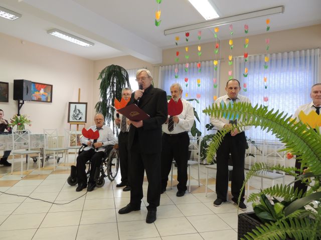 Z okazji Dnia Kobiet, które w tym roku wypadło w niedzielę, w piątkowe przedpołudnie kalinowi mężczyźni zaprezentowali montaż słowno-muzyczny o kobietach. Na zakończenie spotkania wręczono paniom drobne upominki. |